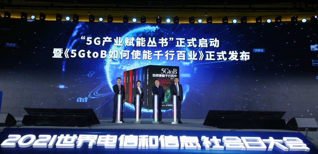 2021年5月17日,2021年世界电信和信息社会日大会期间,华为公司携手人民邮电出版社及产业合作伙伴共同举办5G赋能千行百业丛书启动仪式暨《5GtoB如何使能千行百业》发布仪式。人民邮电出版社社长顾翀、华为公司5G产品线总裁彭红华、中国信息通信研究院副院长王志勤以及本书作者孙鹏飞应邀出席并做精彩致辞。