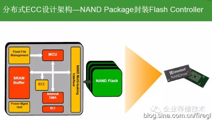 如上图,未来我们会看到一种将NAND Flash和闪存控制器(包含ECC和FTL)集成于一颗芯片的方案。