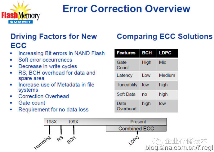 上图来自Altera在Flash Memory Summit2014上的演讲资料,可以看到LDPC和BCH的对比优势。
