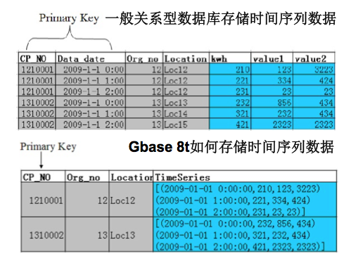 一般关系型数据库存储时间序列数据,存储在普通的行存储表中。Gbase 8t如何存储时间序列数据?采取自动分成header和时间序列部分,具有很好的压缩比与查询性能。在实际的对比中发现, 关系型数据库表随时间的增长,查询效率将下降越来越快,而对于 TimeSeries 性能受时间影响非常小,其查询效率是关系型表的几十倍。