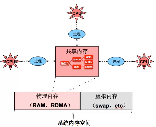 杀手锏之二:Shared Memory共享内存架构。在多CPU机器里面,针对UNIX系统中进程间信息交换、共享机制。