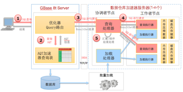 其实,iWA的原理相对来说比较简单,这是GBase 8t平台,用户发了一条查询进来以后,首先在加速器查询表中查询,判断这个表的内容是否在AQT加速器查询表中。数据仓库加速器服务器可以看作是一个几台物理服务器组成的集群,但实际只用每台服务器内存,根据查询的语句判断,如果数据最新版本在内存里,那么就把请求透明地路由到GBase 8t Server来进行查询,并把查询结果返回给用户,所以这是完全透明的过程。