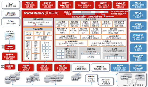 Informix运行时的整体架构也采用了共享内存+进程+VP方式,VP就是虚拟进程,带来的直接效果不仅加快了进程速度,同时性能也得到了提升。