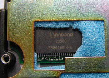 我们开始以为8MB缓存容量的希捷酷鱼五代硬盘就是酷鱼五代硬盘的Serial ATA版本,但事实证明了我们想法的错误,其实它仍然是Ultra ATA/100接口的IDE硬盘。8MB缓存的酷鱼五代硬盘的转速仍然是7200rpm,平均寻道时间9.4ms。酷鱼五代的硬盘单碟容量达到60GB,它的内部传输速率达到了目前最高的570MB/s。也就是说这款酷鱼五代硬盘和我们先前评测的那块硬盘唯一不同的地方就在于它配备了8MB的缓存容量。我们可以看到它的缓存芯片已经从2MB的现代(Hynix)颗粒换成了华邦(Winband)的8MB颗粒。