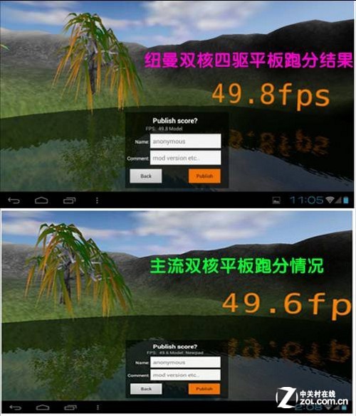 结果表明,此款新品在ARM性能,CPU性能和GPU性能,3D渲染能力方面相比于主流单核平板产品性能提升300%以上。甚至整体性能表现已经超过了所有采用同一个芯片构架的平板产品,这M6的双核处理器在纽曼产品中发挥的更加淋漓尽致。