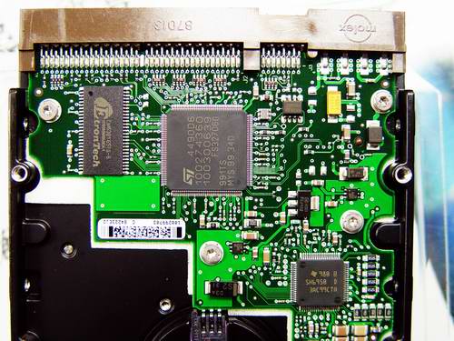 硬盘背面可以看到3颗芯片,最大的是希捷的主控芯片,左边的是钰创-6的磁盘缓存,右边那颗是德州仪器出品的电机控制芯片。