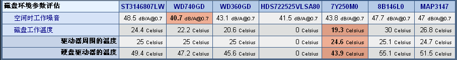 WD740GD的10000 RPM转速,双碟设计以及新型的FDB电机联合作用,使得工作温度在高于室温摄氏22.7度的水平。总的来说,禽鸟的温度要高于其他的ATA硬盘,但是要比四碟SCSI硬盘低,不像其他ATA硬盘那样,新禽鸟在工作的时候需要良好的通风散热环境,考虑到产品的定位是硬件狂热者和服务器市场,这个问题影响并不大。
