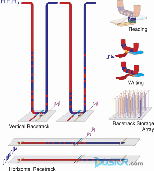 今年4月11日出版的《科学》杂志发表了两篇论文,文中介绍了由IBM院士Stuart Parkin先生及IBM Almaden研究中心(位于圣何塞市)同事共同研发的一种名为"赛道"内存的技术基础原理以及该技术发展过程中的一项极具里程碑意义的成果。该成果可使得电子设备在同样的空间内存储远多于今天的数据,同时拥有闪电般的启动速度、低得多的成本以及前所未有的稳定性和耐久性。未来的十年内,赛道内存(因数据延线"道"运动而命名)可使得固态电子设备–由于没有运动部件因此更加耐用,能够在同样的空间内容纳远多于如今的数据。例如,这项技术可使得MP3播放器这样的手持设备存储大约50万首歌曲或3500部电影–容量是当今的100倍,而成本和能耗却低得多。这些设备不仅能够在同样的空间内存储更多的信息,而且其所需的电量及产生的热量也要少得多,同时几乎不会损坏。其结果是,海量的个人存储内容仅使用一块电池便可运行几个星期,而且这些内容几十年也不用担心损坏。