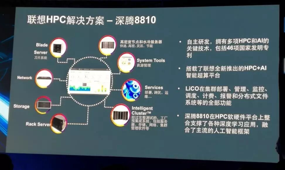 深腾8810集群是联想自主研发的全新集群,配有HPC+AI智能超算平台LiCO,它也是联想为企业级用户推荐的人工智能应用的平台。