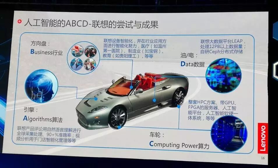HPC助力AI应用,这是完全可以预见到的未来。这也是为什么“智能超算”成为2017联想全球超算峰会主题的原因。对于AI来说, 4要素中的算法、数据和计算完全具备,所欠缺的就是与行业的结合。
