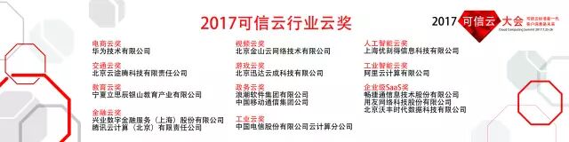 可信云行业云奖是为了表彰致力于云计算在政府、金融、教育、交通、电商等行业应用以及人工智能和企业级SaaS发展的企业。可信云行业云奖包括:电商云奖、交通云奖、教育云奖、金融云奖、视频云奖、政务云奖、工业云奖、人工智能云奖、企业级SaaS奖。其中,华为技术有限公司