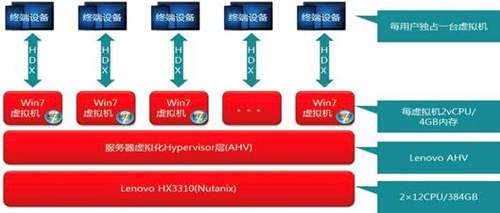 联想HX3310超融合系统在一套机箱中融合了计算、网络、存储和服务器虚拟化等资源,并包含了备份软件、快照技术、重复数据删除、在线数据压缩等元素,其多套单元设备可以通过网络聚合起来,实现模块化的无缝横向扩展(scale-out),形成统一的资源池,是一个天然的云桌面环境承载平台。