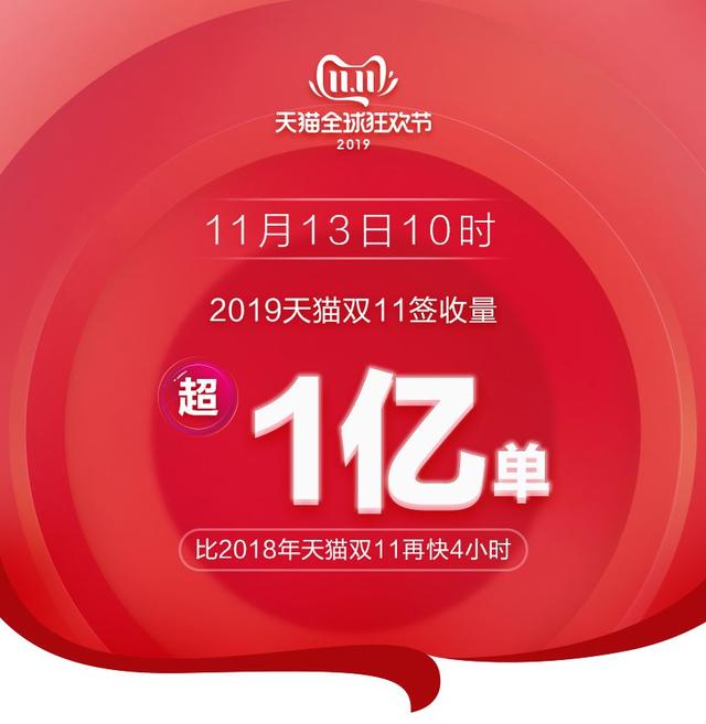 2019年天猫双11物流再创新速度。菜鸟裹裹数据显示,11月13日10时左右,2019天猫双11的第1亿个包裹已经送达,比去年提速约4小时,仅用2.4天,创下数智物流新记录。
