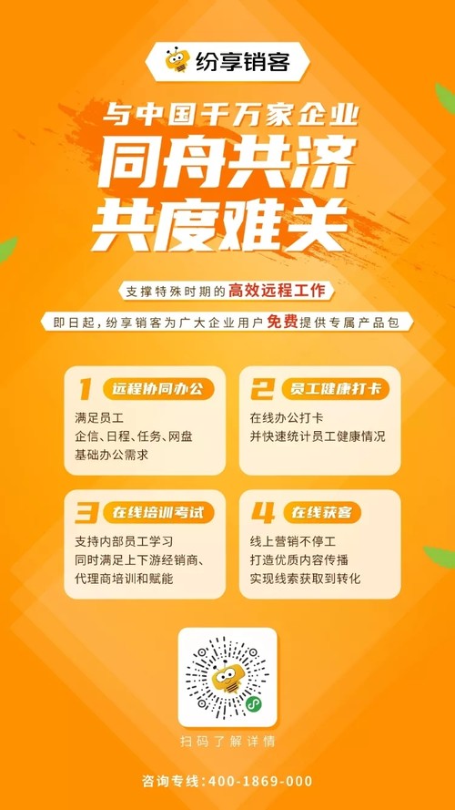 作为连接型CRM专业提供商,纷享销客为了支撑中国企业在艰难时期正常开展业务,即日起将免费开放包括远程协同办公、员工健康打卡、在线培训考试、在线获客在内的产品包,下载立即开通使用。