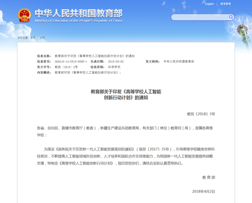 应对AI人才的紧缺,中国高校在行动!2018年4月,教育部印发《高等学校人工智能创新行动计划》,支持高校在计算机科学与技术学科设置人工智能学科方向,推进人工智能一级学科建设,推进“新工科”建设,2020年建设100个“人工智能+”复合特色专业,建设50门AI领域国家级精品教学课程。