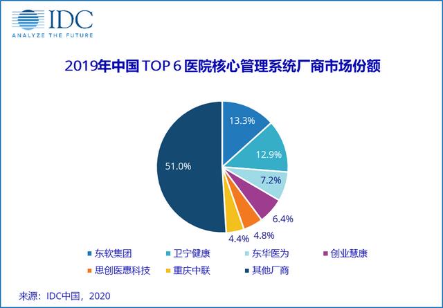 IDC预测,2019 年中国医院核心系统的市场规模为45.62 亿元人民币,同比增长18.3%。IDC认为,医院核心管理系统是整个医疗健康服务体系的枢纽与核心,获得了核心系统的市场优势则具备了构建更大范围医疗信息系统的优势,以及构建整个健康城市、卫生应急等系统的基础。