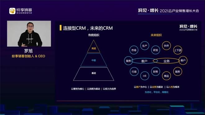 会上,纷享销客创始人&CEO罗旭更详细地指出了CRM在智联时代对云企业销售增长的意义。全场景、全链路、端到端、一体化,是智联时代的鲜明的特征,而在人、服务、业务、生态、数据这些产业关键元素各自的连接以及互相的连接下,一方面让企业在生产、运营、服务上有了数字化能力平台,但同时对企业的销售和管理决策来说也意味着不小的挑战。