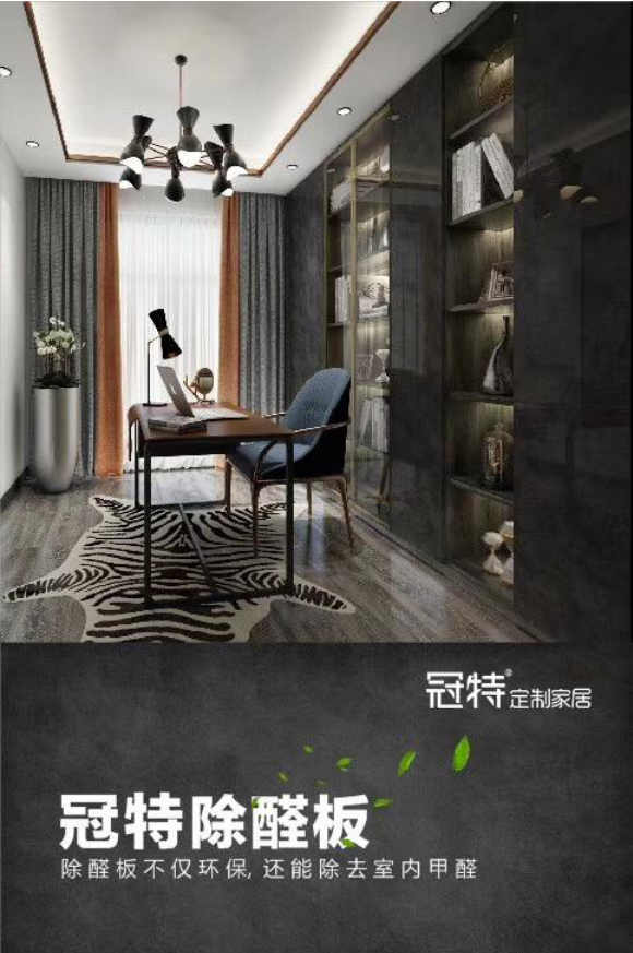 除了对信息化科技生产的追求,冠特还坚持提倡绿色环保的高端全屋定制理念,推出空间环保新科技—冠特除醛板,全面采用优质环保板芯,负离子除甲醛贴面。冠特除醛板通过纳米高科技在三聚氰胺贴面上覆盖一层带正负电极物质的第四代板,只要空气中湿度不为零,它就不间断转化为除醛物质,形成永久除醛发射功能,并且不会产生有害物质或产生其他副作用。