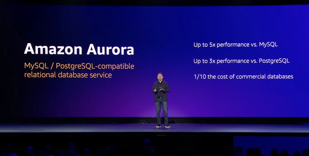 亚马逊云科技最自豪的数据库肯定就是Amazon Aurora,性能吊打开源的MySQL和PostgreSQL,成本比商业版的数据库低,最重要的是,它在亚马逊跟甲骨文的隔空对线中立下了汗马功劳。