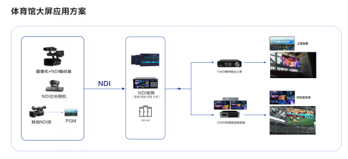 体育场作为大型的室内场馆主要用于体育比赛和集会,具备一定特殊性,它的视频播放场景非常多,比如转播大屏幕、室外广告屏、餐厅、连廊、休息室、更衣室、VIP室等各种大大小小的屏幕等,动辄数百块屏幕。怎样对这么多屏幕的视频信号统一调度实现互联互通,怎么对这么多音视频设备进行远程集中管理,项目施工和维护怎么实现低成本,高质量,简单易升级,是体育馆音视频建设项目中最关心的问题。