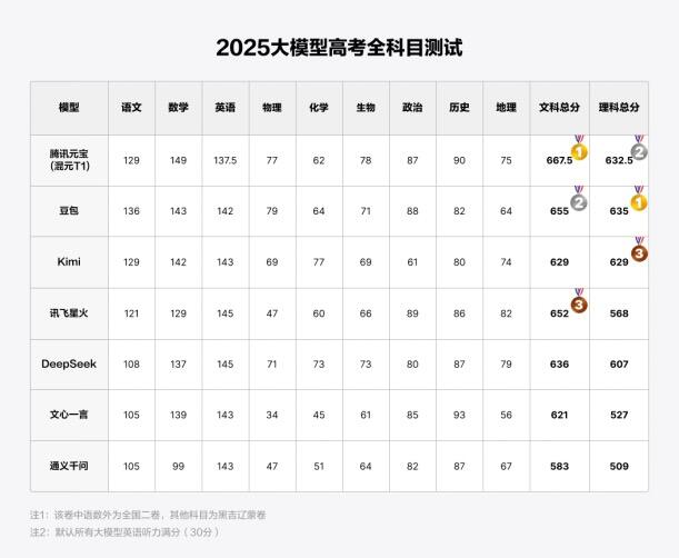 而在理科考试中,和往年一样,理科成绩会整体会弱于文科。拿到首先的豆包获得了 635 分,紧随其后元宝和kimi拿到了632. 5 分和 629 分,都可以冲刺985。但对比文科,无缘先进大学。