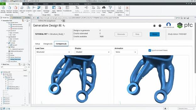 Creo生成设计快速生成不同材料和制造工艺的设计选项。