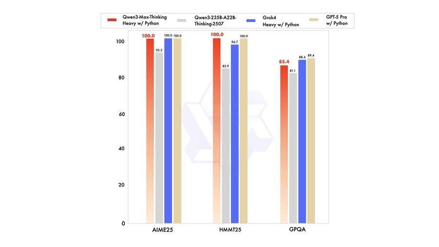 Qwen3-Max的推理增强版本Qwen3-Max-Thinking-Heavy也展现出非凡性能,结合工具调用和并行推理技术,其推理能力创下新高,尤其在聚焦数学推理的AIME 25和HMMT测试中,均达到突破性的满分100分,为国内首次。Qwen3-Max推理模型之所以能够取得优异成绩,原因在于大模型在解数学题时懂得调动工具,能够写代码做题,同时,增加测试时的计算资源,也让模型表现变得更好。
