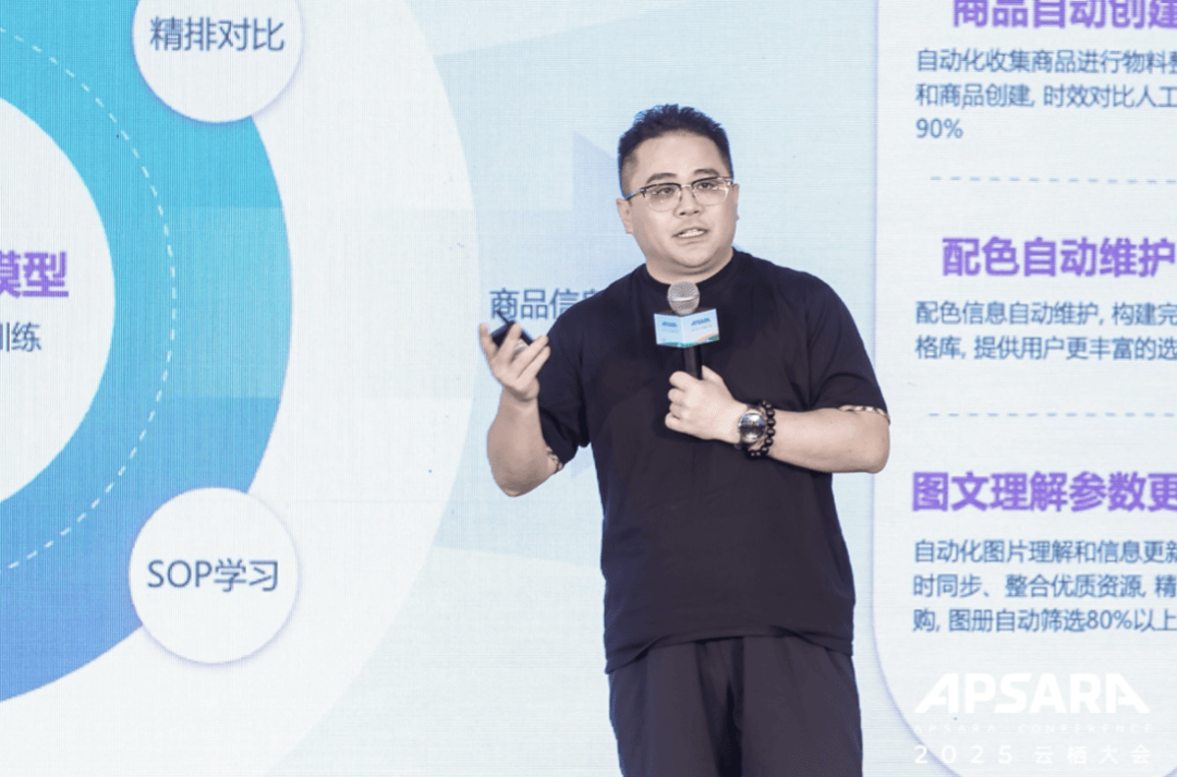 作为电商领域的代表,识货CTO陈欢在分享中详细介绍了识货如何利用AI重构其核心资产——商品数据平台。面对巨量的数据处理,AI的应用使商品库建设流程(渠道关联、商品新建、审核)的自动化率达到了85%以上。而陈欢也提到,其技术架构的核心是构建了10亿级规模的商品向量库,基于通义千问进行训练,从而实现了高精度的商品匹配和去重。