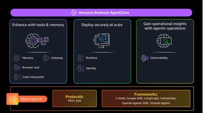 Amazon Bedrock AgentCore现已全面可用,让每位开发者都能快速将Agent从试点阶段推进至规模化生产。Amazon Bedrock AgentCore提供构建、部署和运营Agent所需的完整基础架构:客户可轻松为Agent配置工具、记忆模块与数据源以处理复杂工作流;只需几行代码,就能将Agent部署到当今最安全、可扩展的运行时环境中;还能通过企业部署所需的控制机制和访问管理功能,对Agent进行运营管理。以上所有操作均无需管理任何基础设施,且客户可以轻松上手,使用任何所选择的模型或Agent框架。