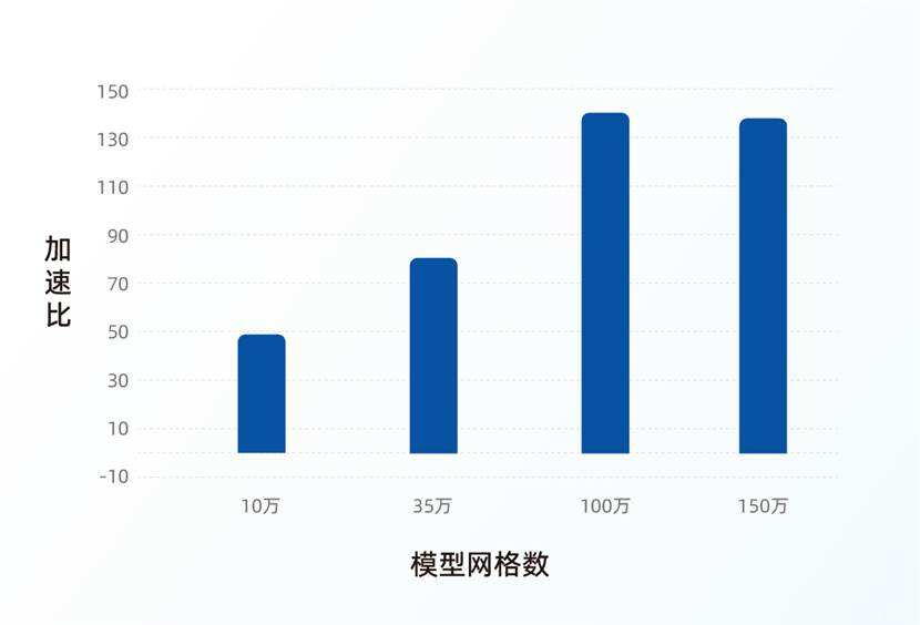 加速对比测试选择10万、35万、100万、150万水平方向网格等模型,采用企业级大显存GPU进行加速计算,相对于X86 CPU的单核计算速度,分别达到了48、77、139和135的加速比,显示了对先进精度模式的良好加速效果。在多个GPU计算节点的情况下,也可采用创新并行模式支持多GPU并行计算。且经过验证,该模型的计算精度与基于CPU的数值模型完全保持一致(图2)。