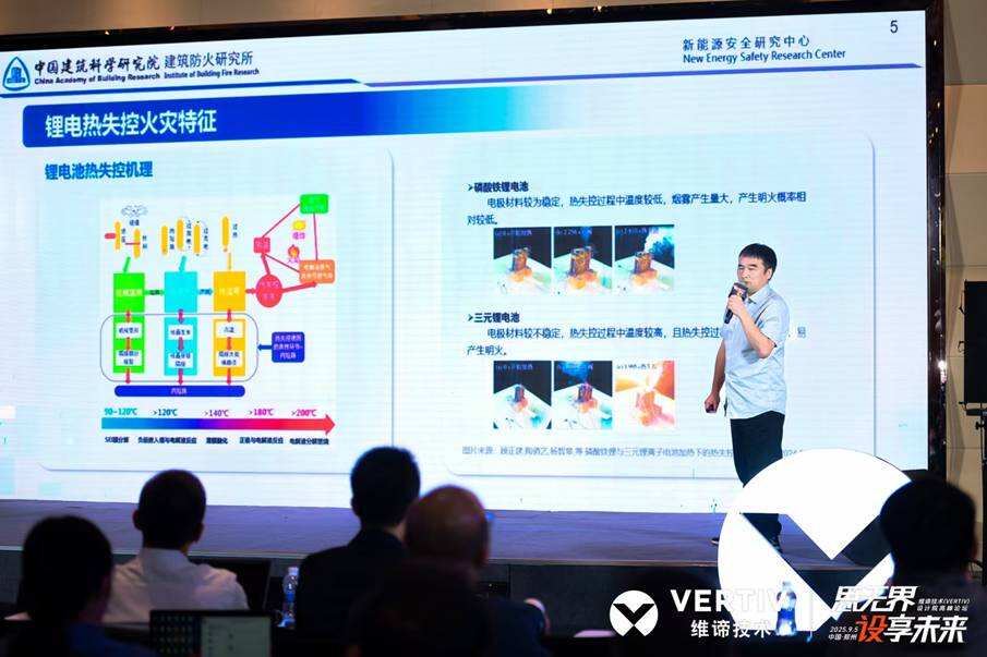 随后,中国建筑科学研究院建筑防火研究所新能源安全研究中心主任汪茂海针对锂电应用消防研究与对策这一话题,强调必须以设计为先、消防兜底,全链条全生命周期实现锂电应用安全保障。