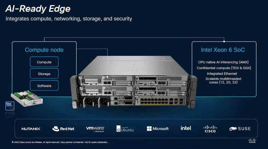 这个历经两年时间研发出的平台预计明年面市。它采用模块化设计,单机箱可容纳5台服务器并支持60TB存储,集成英特尔至强处理器,实现AI就绪;其创新功能包括零触达部署和全生命周期管理,覆盖硬件到应用层的分段保护。