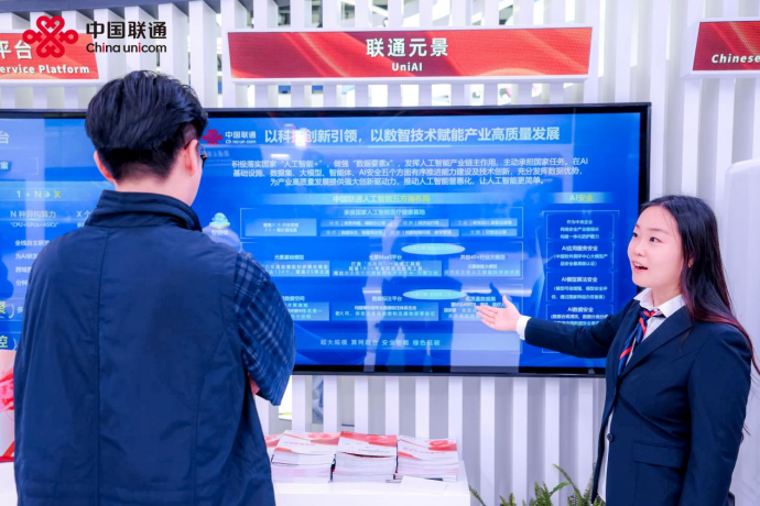 在互联网之光博览会联通展台,随处可见”元景大模型“的身影。联通数智围绕数据集、大模型、智能体、AI安全等方面进行全面展示,以数智融合推进数实融合,赋能千行百业。