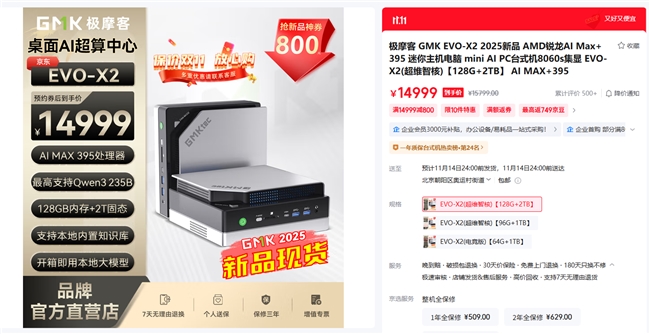 在AI全面触达各行各业的今天,如果你也是AI爱好者、开发者、极客或深度内容创作者,难免会有将大模型部署于本地的要求,低延迟、高私密、可掌控,甚至支持本地内置知识库,开箱即用本地大模型。这方面的代表产品就是极摩客EVO-X2 mini AI工作站,其搭载锐龙AI Max+395处理器,并集成Radeon 8060S内置显卡,还有50 TOPs的NPU AI算力加持,结合AMD独特的UMA统一内存技术,可以调用内存中的75%给到集成显卡做显存,最高96GB专用显存,AI算力爆表,还支持四屏显示,是最先迈向市场中的桌面mini AI工作站。