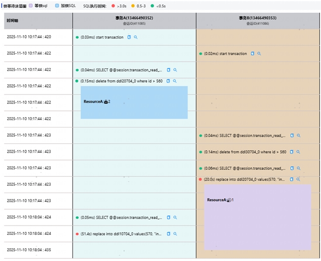 • 锁等待透视:不仅发现锁等待,更能完整展示锁的在数据库内核源码级的形成过程、竞争关系及阻塞链条,精准定位性能卡点