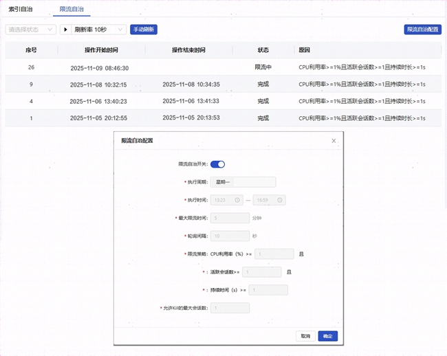 • 实时干预能力:对阻塞会话、资源争用等紧急情况,基于预设策略实现自动处理