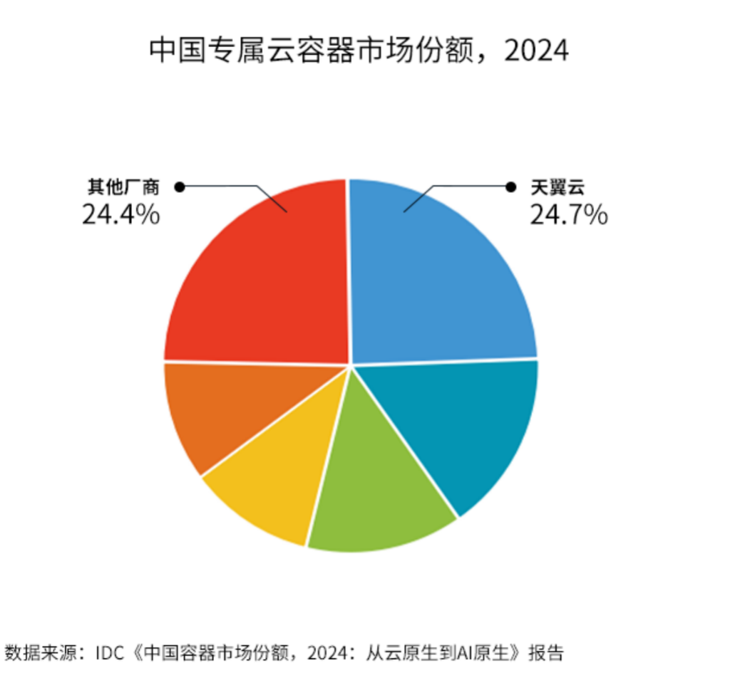 近日,国际数据公司IDC发布《中国容器市场份额,2024:从云原生到AI原生》报告。数据显示,2024年度,中国容器市场总体规模达535.27亿元,整体增长46.7%,保持高速增长态势。其中,天翼云表现突出,以24.7%的市场份额位居中国专属云容器市场第一。这是天翼云继2022年后,再次在该细分领域登顶。