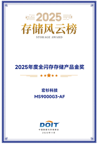 11月18日,由DOIT主办的2025中国数据与存储峰会在北京隆重召开。宏杉MS9000G3-AF系列高端全闪存储凭借面向AI时代的强大技术能力与产业支撑价值,一举斩获“2025年度全闪存存储产品金奖”,再度彰显了宏杉科技在高端存储领域的自主技术积淀与核心实力。