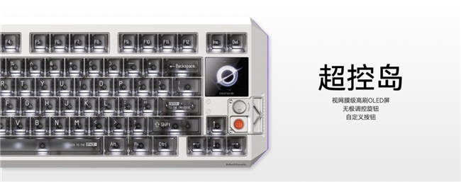 奇点系列磁轴键盘不仅拥有顶级的性能,还创新性地加入“超控岛”的交互模块,集成了一块媲美 Apple Watch 屏幕素质和交互顺滑的 OLED 触摸屏及物理旋钮,支持自定义屏保、实时显示 RT 参数、灯光调节、虚拟按键等丰富功能,未来还可以通过 OTA 升级,解锁更多新奇好玩新功能,极大提升了交互效率与个性化体验。