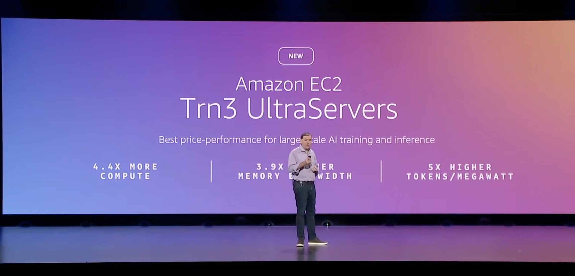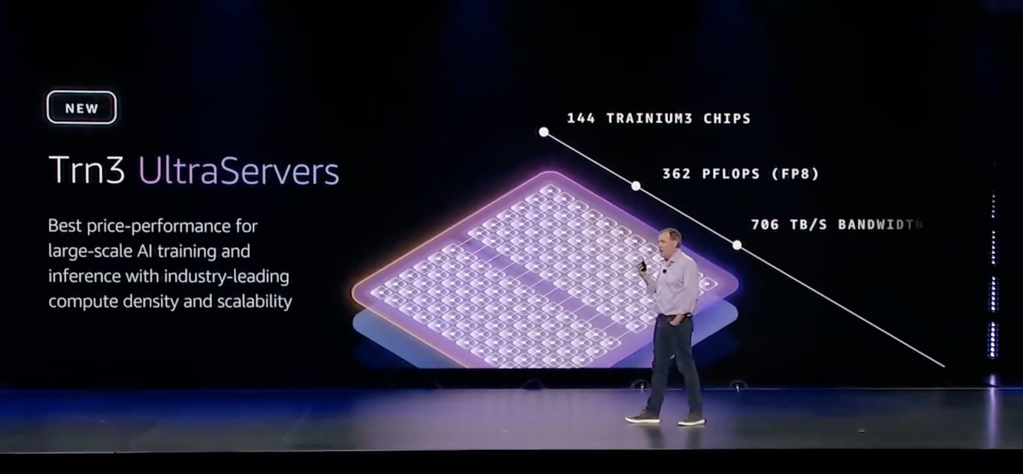 2025年12月2日,亚马逊云科技在拉斯维加斯举办re:Invent大会。在生成式AI极速狂飙的时代背景下,亚马逊云科技宣布AI硬件上的全新突破,正式发布基于研芯片Trainium3和基于该芯片的Trn3 UltraServers服务器。