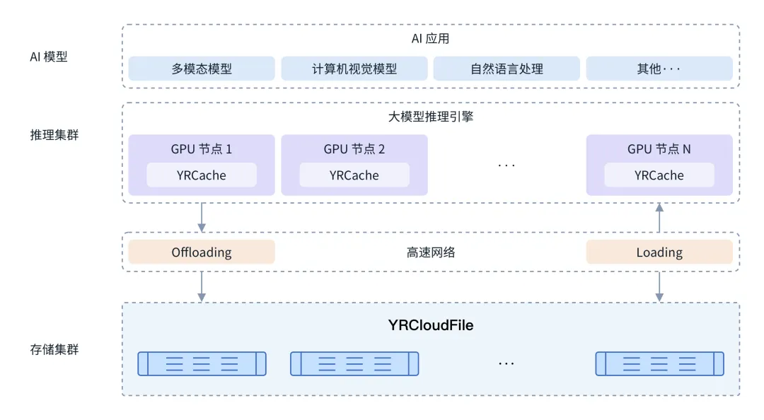 作为新一代大模型存储系统,焱融YRCloudFile除了擅长训练场景,也面向推理场景做了深度优化。2025年,焱融发布国内首个大模型推理加速方案——焱融YRCache,凭借“以存代算”为核心理念,缓解GPU显存不足的挑战并提高了推理的效率。
