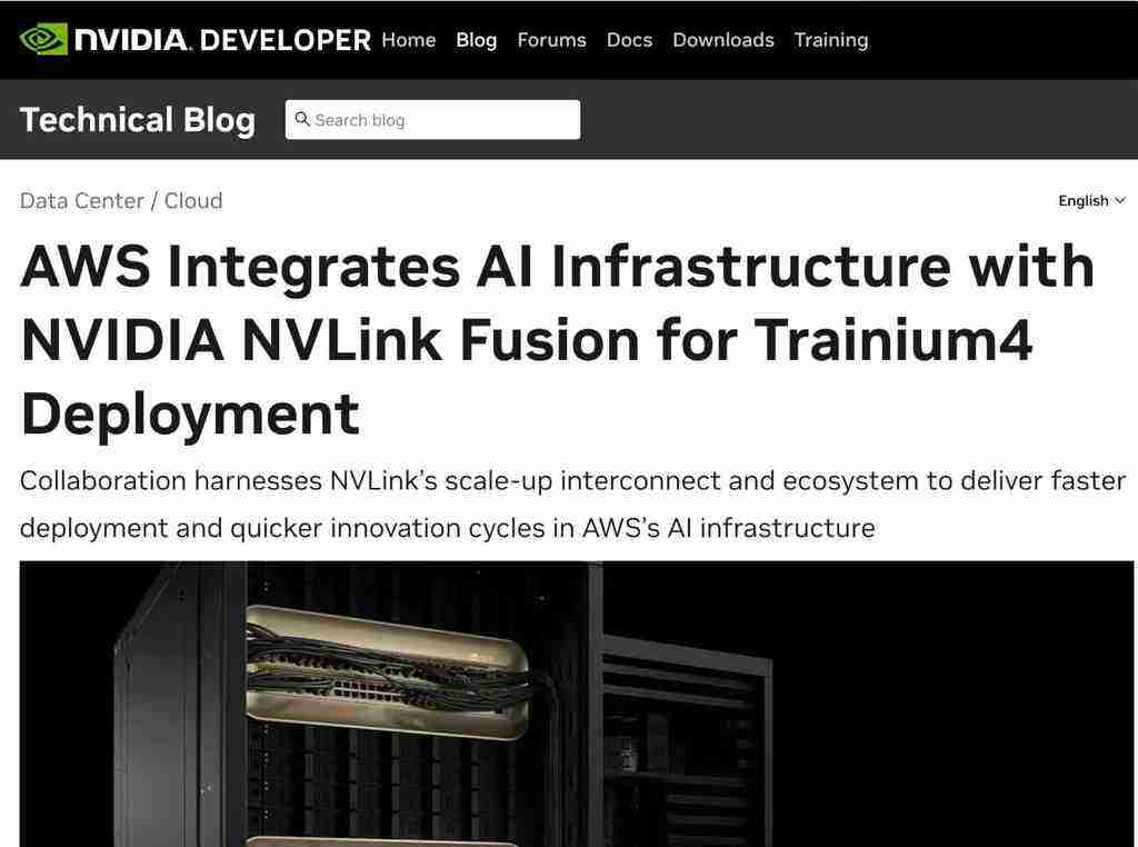 从技术规划来看,这几天,亚马逊云宣布将在下一代Trainium4中集成英伟达的NVLink Fusion,让Trainium4进入英伟达的NVLink技术生态,这意味着会在Trainium4植入英伟达的小芯片,利用英伟达的Grace CPU和NVLink交换机技术生态。