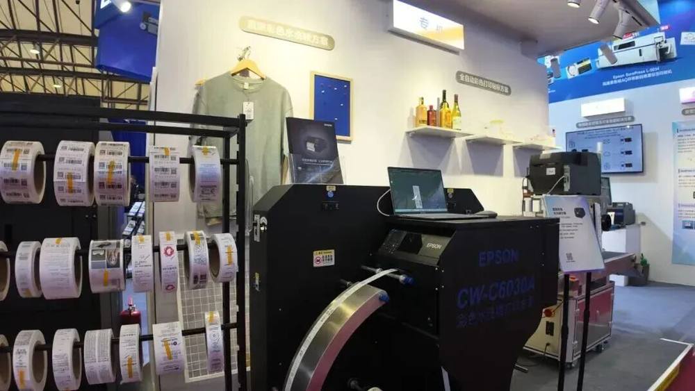 展会现场,爱普生还展出了全自动彩色打印贴标方案、条幅自助机、专用色彩管理及可变数据解决方案、无底纸热敏标签方案以及新型环保热敏打印方案等,为用户搭建多元化的产品矩阵,以更“小而简”的设备收获更强劲生产力。