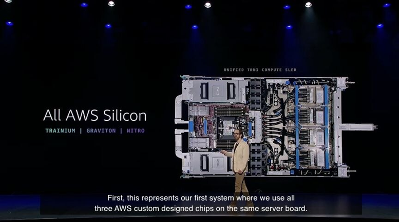 Graviton 也是亚马逊云科技自研芯片战略的关键一环,在全新推出的 Amazon Trainium3 UltraServers 中,亚马逊云科技三款定制芯片均部署于统一的计算底座中。在该架构设计中,基于 Arm 架构的 Amazon Graviton 和 Amazon Nitro 分别负责通用 CPU 计算及高性能网络处理任务,为 Amazon Trainium3 UltraServers 提供核心技术支撑。