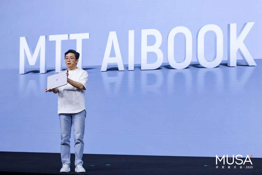 ——发布AI算力本,提供“开箱即用”的开发体验:作为连接开发者与MUSA生态的核心入口,MTT AIBOOK搭载自研“长江”智能SoC,提供高达50TOPS的端侧AI算力,首次实现从芯片、驱动到开发环境的全栈整合,不仅实现了专业AI开发的“开箱即用”,更创新地打破Linux开发、Windows办公与Android应用之间场景壁垒,将强大的AI能力转化为人人可及的生产力,赋能开发者在AI时代成为“超级个体”。