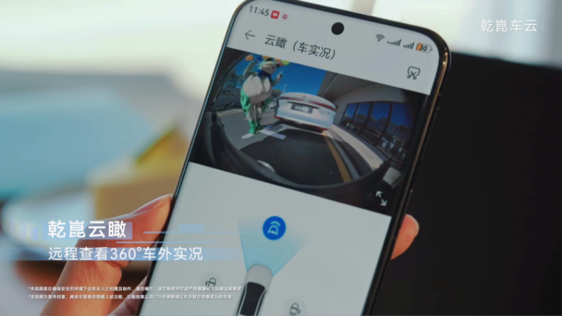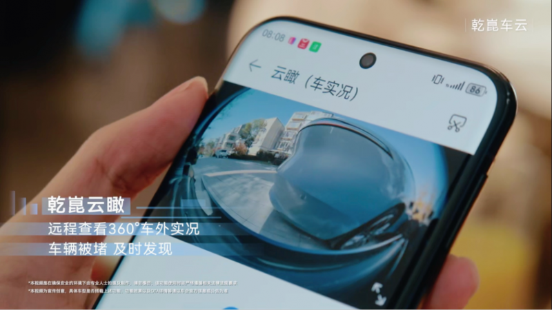 「云瞰」之所以能实现如此流畅的远程查看体验,背后是华为乾崑在车云协同领域的技术积累。通过云服务MDN技术的专用通道传输、弹性带宽及视频网络加速,画面传输延迟低至200-300毫秒,实现“几乎实时”的查看效果。同时,车端超广角摄像头支持360°环绕视角,用户可在手机端自由切换,全面掌握车辆周边状况。此外,系统自动对人脸、车牌进行脱敏处理,兼顾用户监控需求与数据合规要求。
