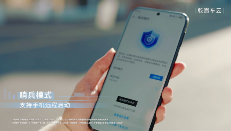 视频中,一位母亲在送孩子上学前,通过华为乾崑APP打开「云瞰」功能,远程查看车辆状态,提前发现车辆被堵并及时协调挪车,从容应对早高峰出行。随后,她将车停在咖啡馆旁,开启「哨兵模式」,当身穿玩偶服的路人不慎触碰到车身时,系统立即启动录像并推送告警至手机,母亲通过「云瞰」功能远程查看现场画面,确认车辆无恙后,继续安心与客户交谈。