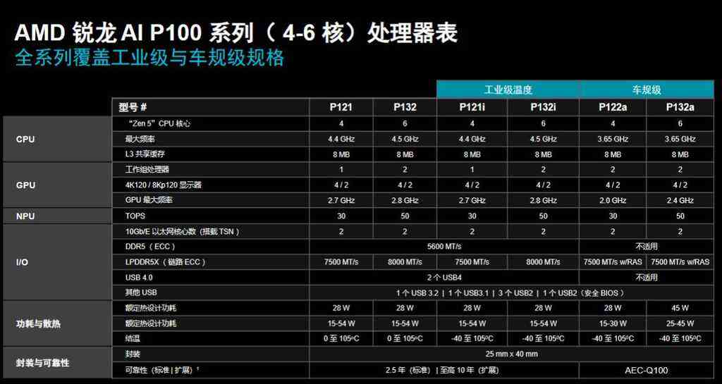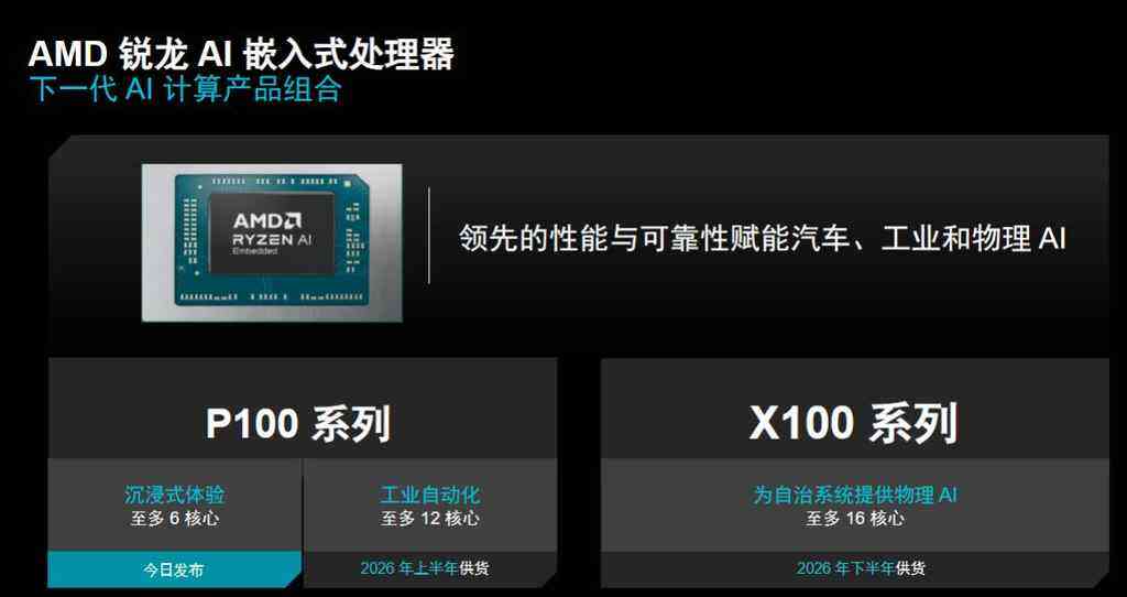 此次发布的Ryzen AI嵌入式解决方案包括P100系列和X100系列。