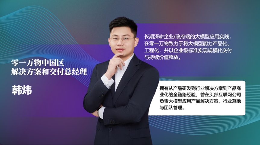 面对重交付如何平衡规模化的疑问,赵斌强提出“一横多纵“战略:一横以万智企业大模型平台为核心,打造开放的企业级AI操作系统,让AI能力可复制;多纵聚焦重点行业,通过一把手工程与灯塔客户共建解决方案,形成示范效应后反哺平台迭代。在一把手工程落地的过程中,李开复博士起到加速器作用,零一万物有完整的战略咨询团队和销售高管团队推进执行,随着平台成熟,定制化与规模化的平衡将逐步实现。