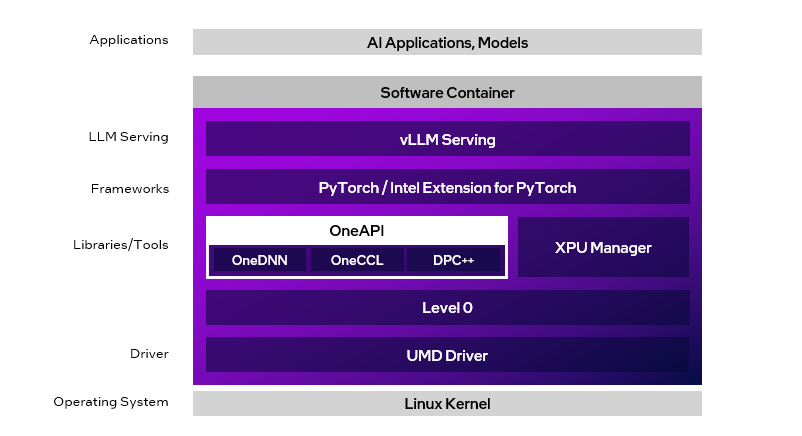 这就是英特尔推出的代号为Project Battlematrix的AI推理工作站解决方案,搭配英特尔至强工作站处理器和英特尔Arc Pro B60显卡,同时还有配套的Linux软件栈,不用担心软件兼容性问题,能以极低的成本,让企业和个人在本地安全地跑大模型。